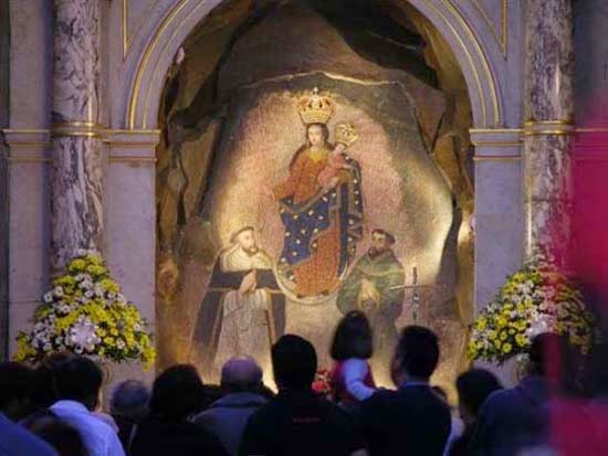 Las Lajas is on the site of a former, smaller church. About 200 years ago, an image of the virgin Mary appeared in the stone on the side of the mountain nearby. As a response to the miracle, Las Lajas was built. Increasingly, some of the locals think the image was painted.