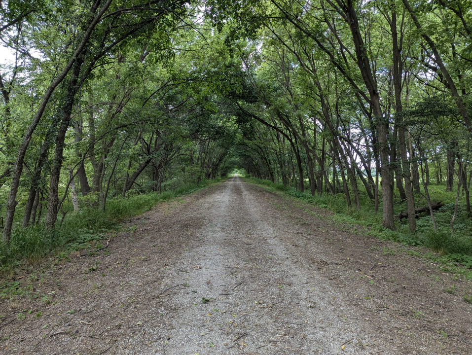 On the way into Wymore, NE, I was on two different rail-trails, one of them only briefly, as it ran east-west. Rail-trails are some of the very best riding you’ll ever do. Rare is the day which manages to simultaneously be easy, fun, and memorable. Most commonly, the easy days aren’t memorable, and the memorable days aren’t easy, but rail-trails are the magic bullet.