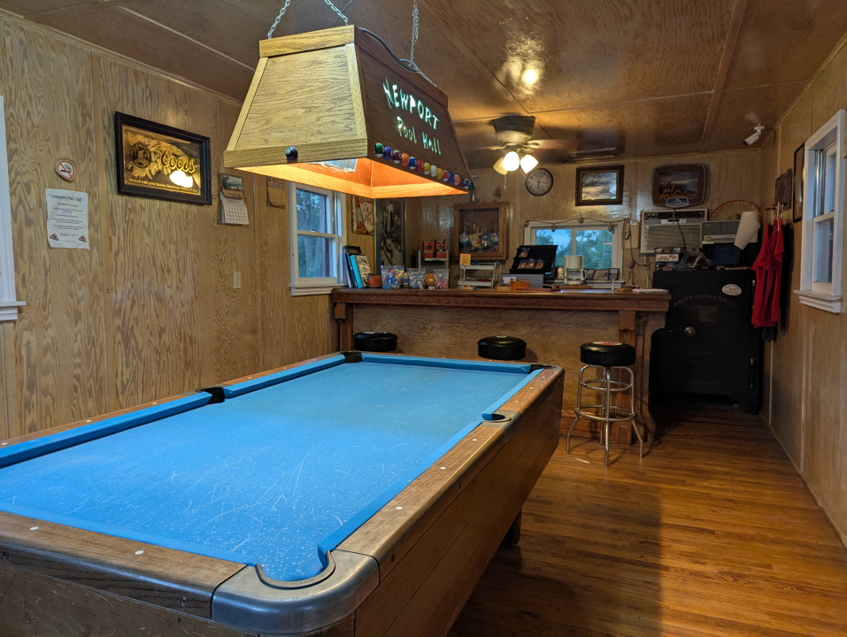 About an hour later, as the sunset hour began, I arrived in Newport and found the pool hall. It was one room, smaller than most people’s bedrooms. The pool table took up half of it.