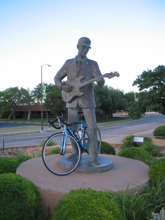After only a 40-mile ride, we were in Lubbock. Many of us finished before 11:00. It seemed like we had just warmed up for the day's ride when we got there. I wound up spending much of the day walking around town, visiting campus and the Buddy Holly statue. The Lubbock chapter of the Texas Exes fed us both dinner and breakfast, and I got to hang out with a great high school buddy while I was in town.