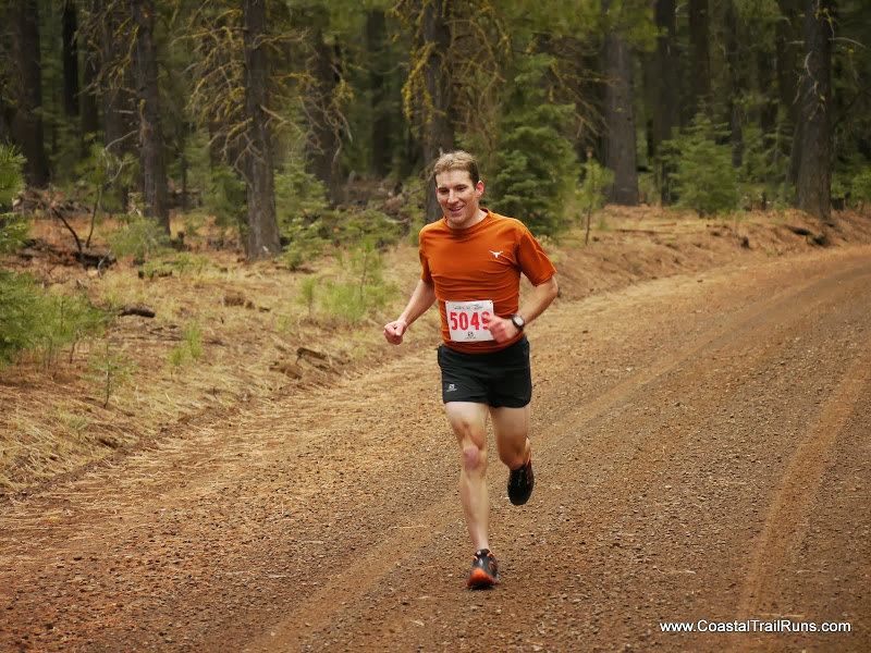 The course, nothing but a long, straight, flat fire road, turned into a shallow incline for the next several miles, slow enough that you didn't even notice it. My pace barely even moved. I kept looking down at my watch. Seven, eight, nine miles into this thing, and I'm still running a 6:30! I haven't even started down the hill yet!