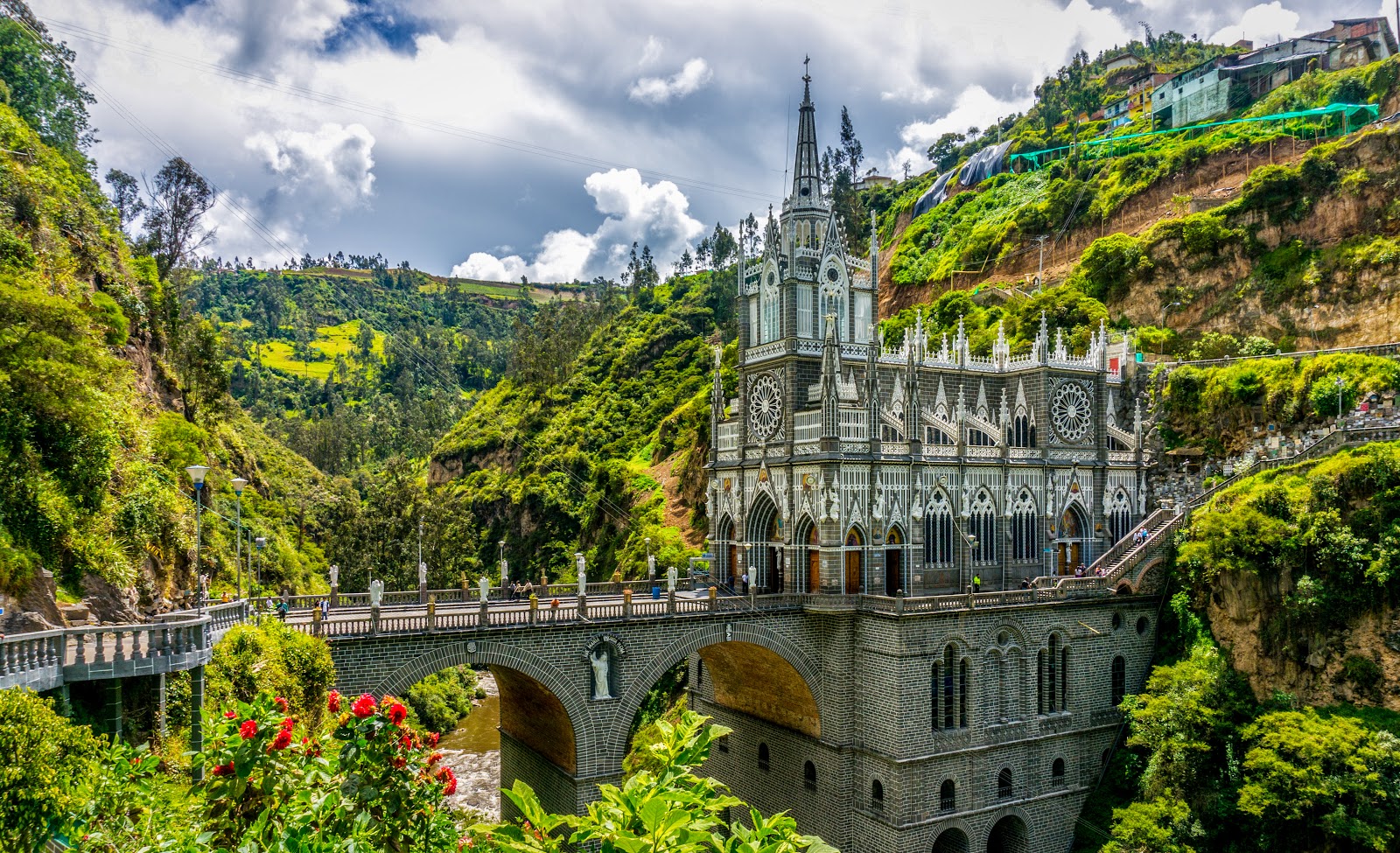Las Lajas is on the site of a former, smaller church. About 200 years ago, an image of the virgin Mary appeared in the stone on the side of the mountain nearby. As a response to the miracle, Las Lajas was built. Increasingly, some of the locals think the image was painted.
