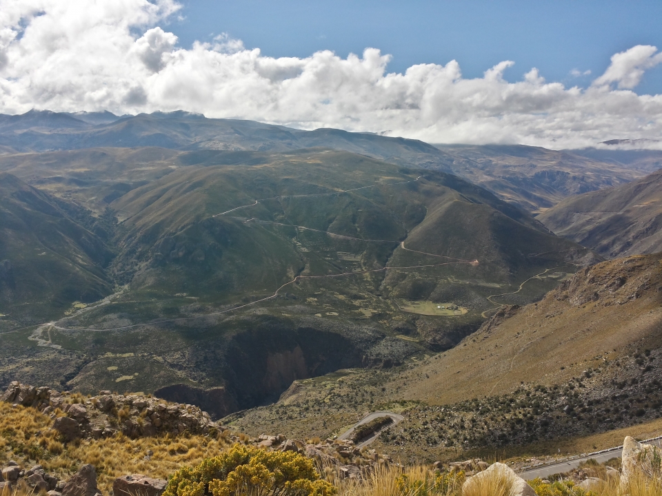 I finally arrived at the edge of the big downhill. I use the word "edge" for good reason. I had barely descended at all, and now I would drop almost 2,000 m all at once, down into a canyon, by means of an incredible number of switchbacks. I was a little upset that I would have to hold the brakes down almost the whole time, and therefore wouldn´t get the full benefit of a good downhill. But still, this was gonna be fun.