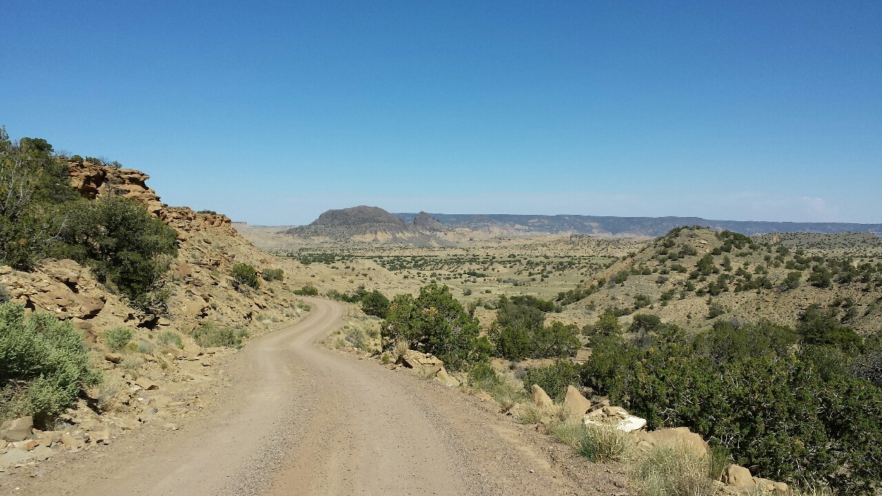Ville and I left Grants together, intending on making Cuba in two days. It looked like it was mostly one giant hill straight out of Grants, a giant downhill, and then all flat from there. We'd already heard there wasn't much water in between, so we figured we'd stop wherever we found some. There was an alternate route, entirely paved, the exact same distance. It's mostly intended for when it's raining, because the normal route can get muddy. Even though the paved one was much flatter, we decided to take the normal one.
