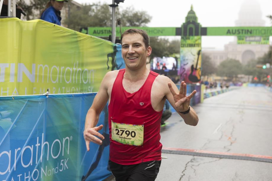 The crowds were small enough that I noticed when I saw a small group on separate occassions. I might've seen them more than twice, but the two that stick out were both on uphills. One of them came about two-thirds of the way through the race, near the UT campus, on the last hill before the course would mostly flatten out for the next hour or so. I enjoyed their cheering enough that I smiled and jawed back at them. I got passed on the hill by a guy who was probably in his 50s, but I was still happy with the pace I was holding on the course's second-to-last hill. It still felt easy to run.