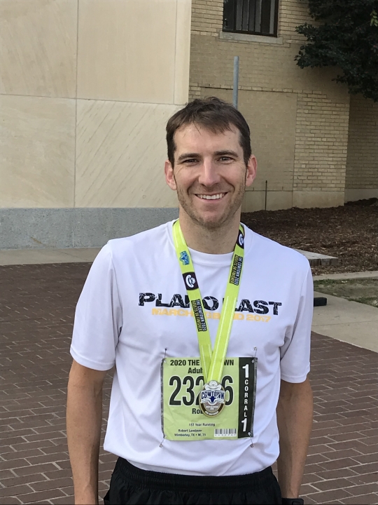 After skipping school and driving up to Plano on Friday, my dad and I arose at 4:45 and drove into Ft. Worth, ready for the 5k at 7:00. It was a chilly morning. Since there weren’t many participants in this race, I was able to keep plenty of warm clothes on, then ditch them only about ten minutes before the gun. Seemed like everyone had a white bib; mine was green. Maybe because I was doing a race both days, and most people weren’t?
