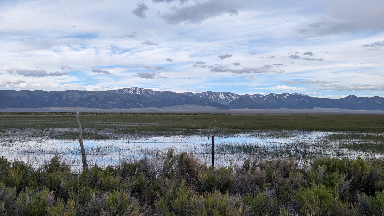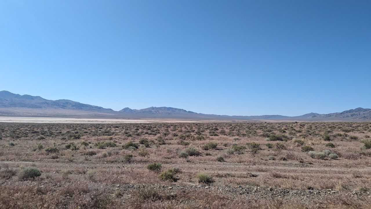 I was surprised at the widespread greenness of the first valley in Nevada, though that didn’t last. In most of Nevada, you can see towns coming from miles away; they’re islands of green dotting the parched yellow desert.