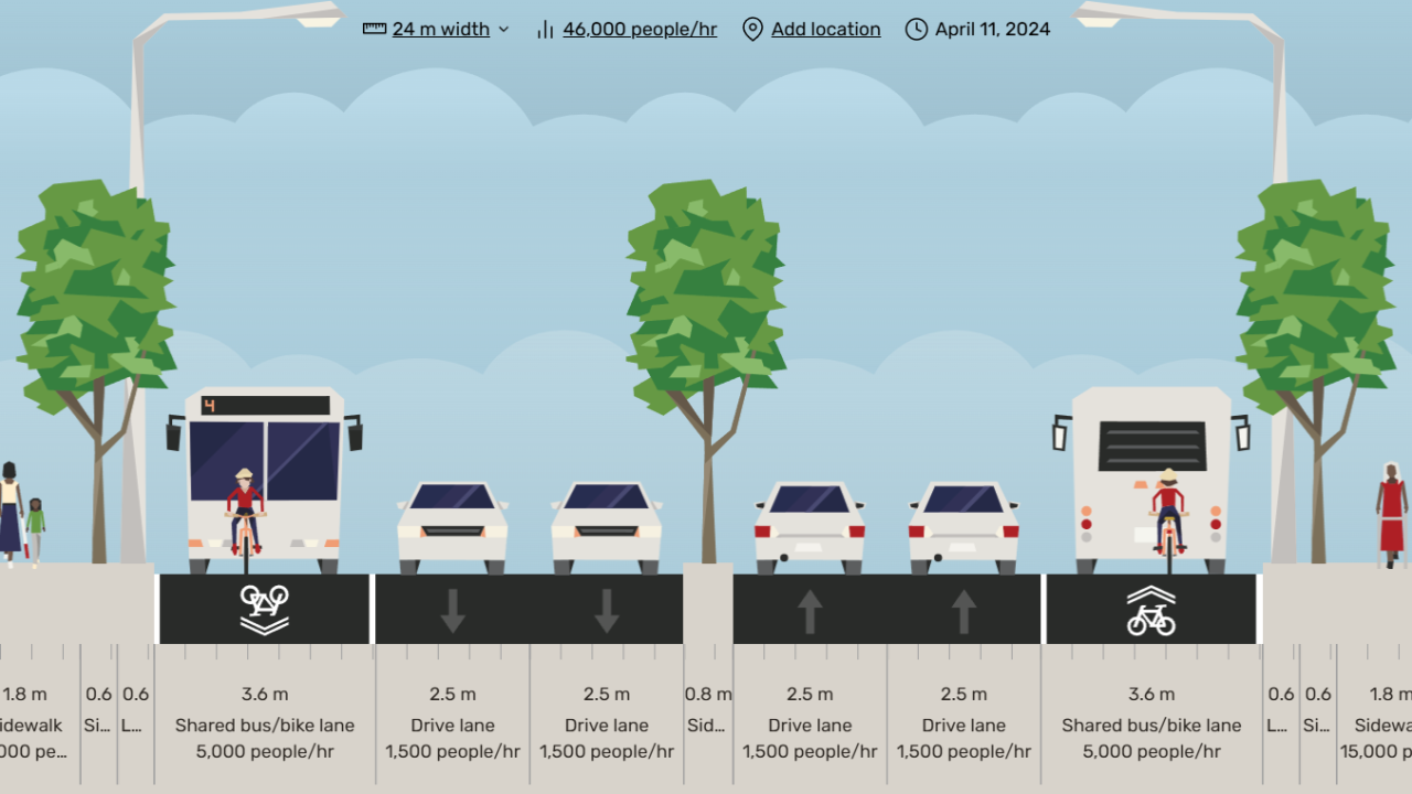 There are many differences between the two designs, but for now, we’ll focus primarily on the shared bike/bus lane, which is essentially a combination of a protected bikeway and a dedicated bus lane, both of which are several times more efficient than a car lane.