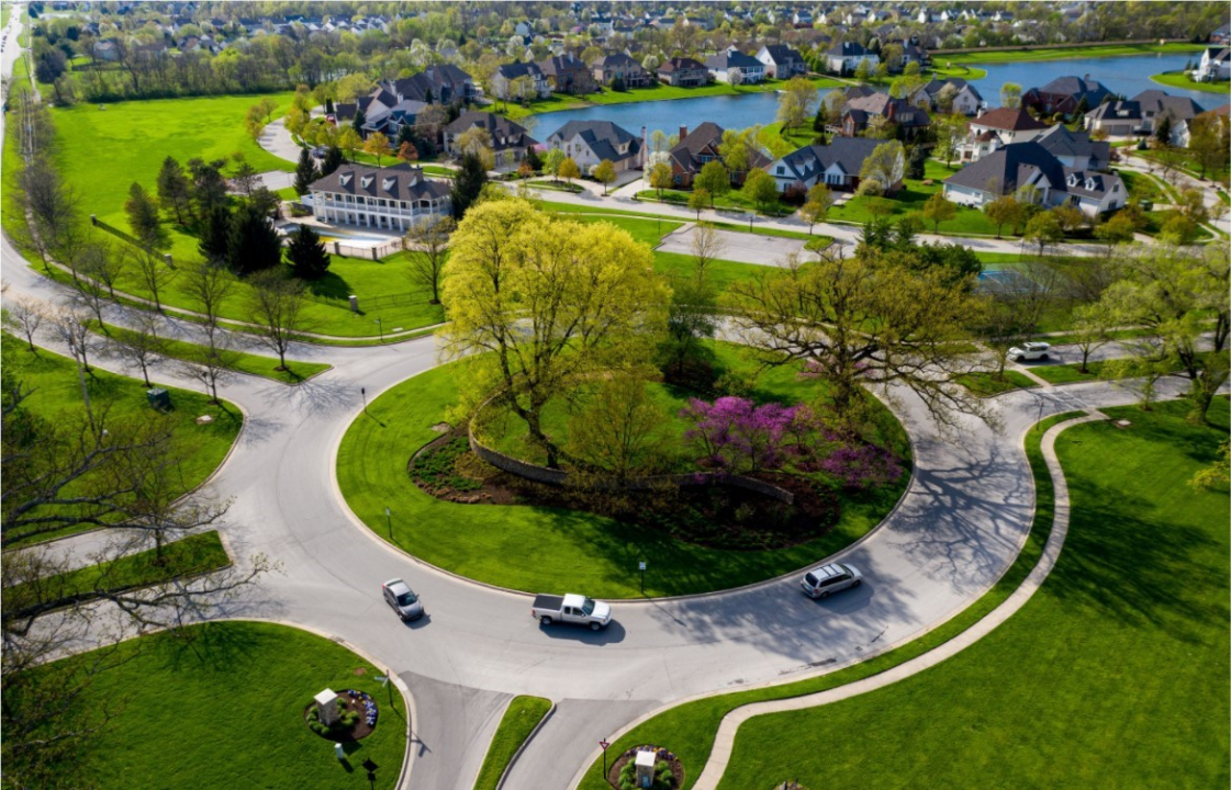 Because roundabouts also move traffic more efficiently, Carmel has saved money by not expanding roadways, which can cost $7 million - $10 million per mile, per lane. In addition, the smoother flow of traffic results in less gasoline use, estimated at $7,200,000 per year (based on a gasoline cost of $2.50/gallon). In a city with 37,369 households (2020 US Census), this comes to nearly $200 per household in gasoline costs alone.