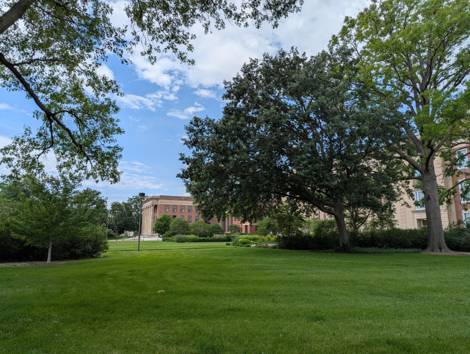The Nebraska University campus’s buildings didn’t impress me, but the trees and landscaping did. It wasn’t what I expected. I’m not sure what I expected; maybe something like OKST.